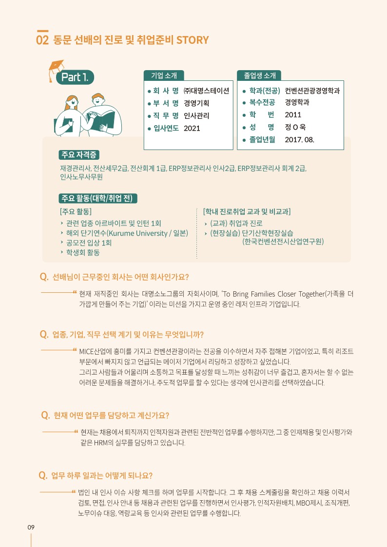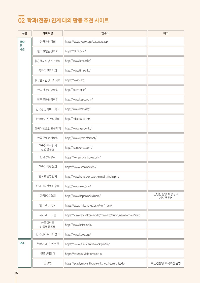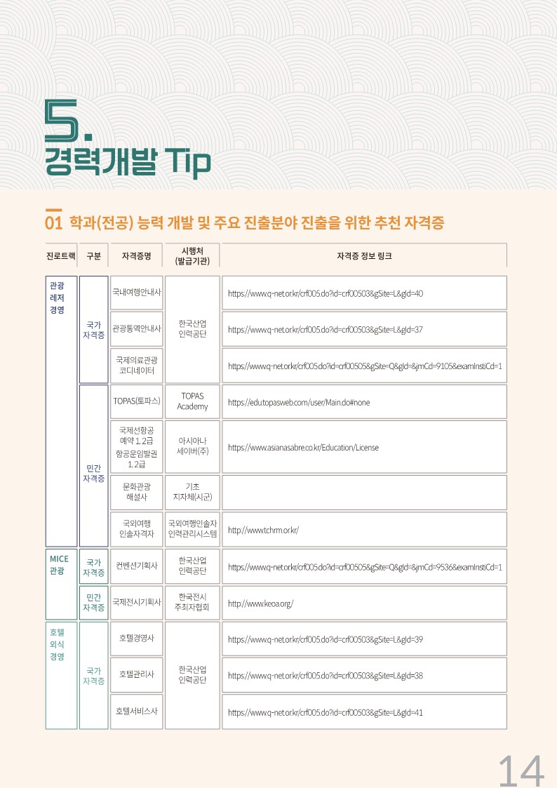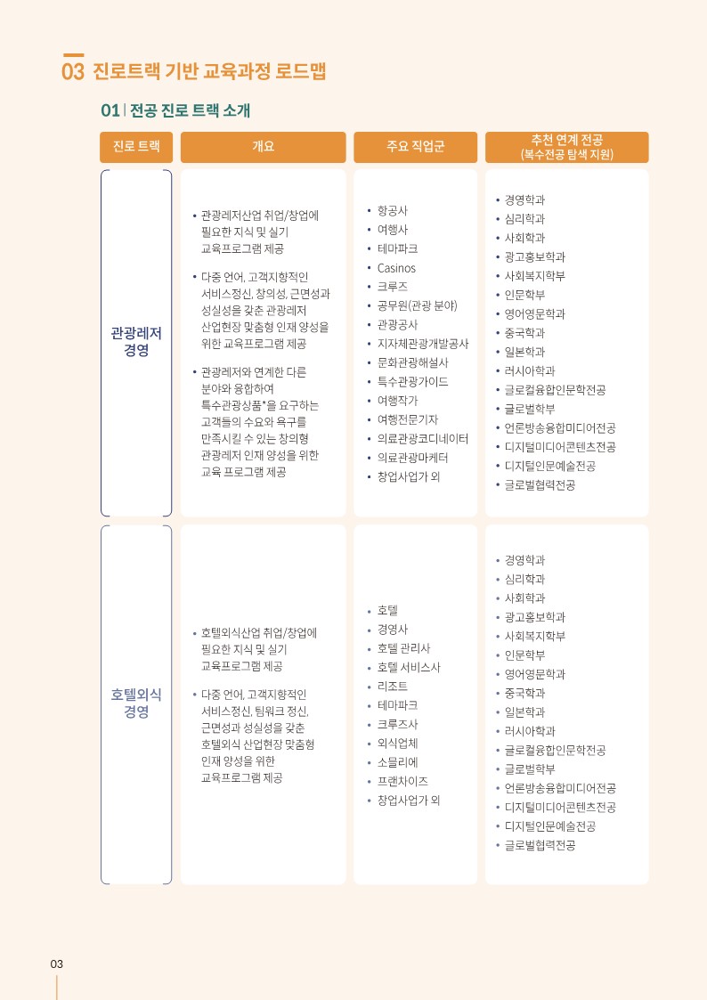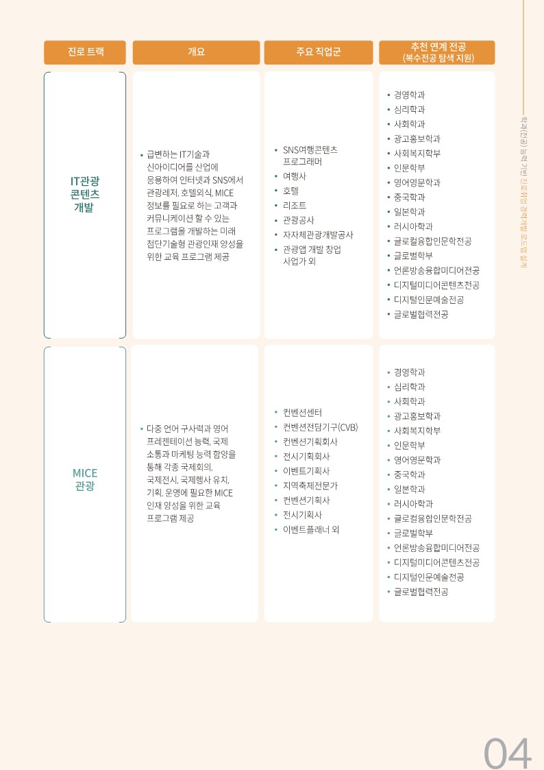 융합관광경영 경력개발 로드맵 안내