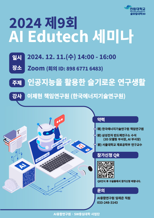 제9회 AI Edutech 세미나 <인공지능을 활용한 슬기로운 연구생활> 안내