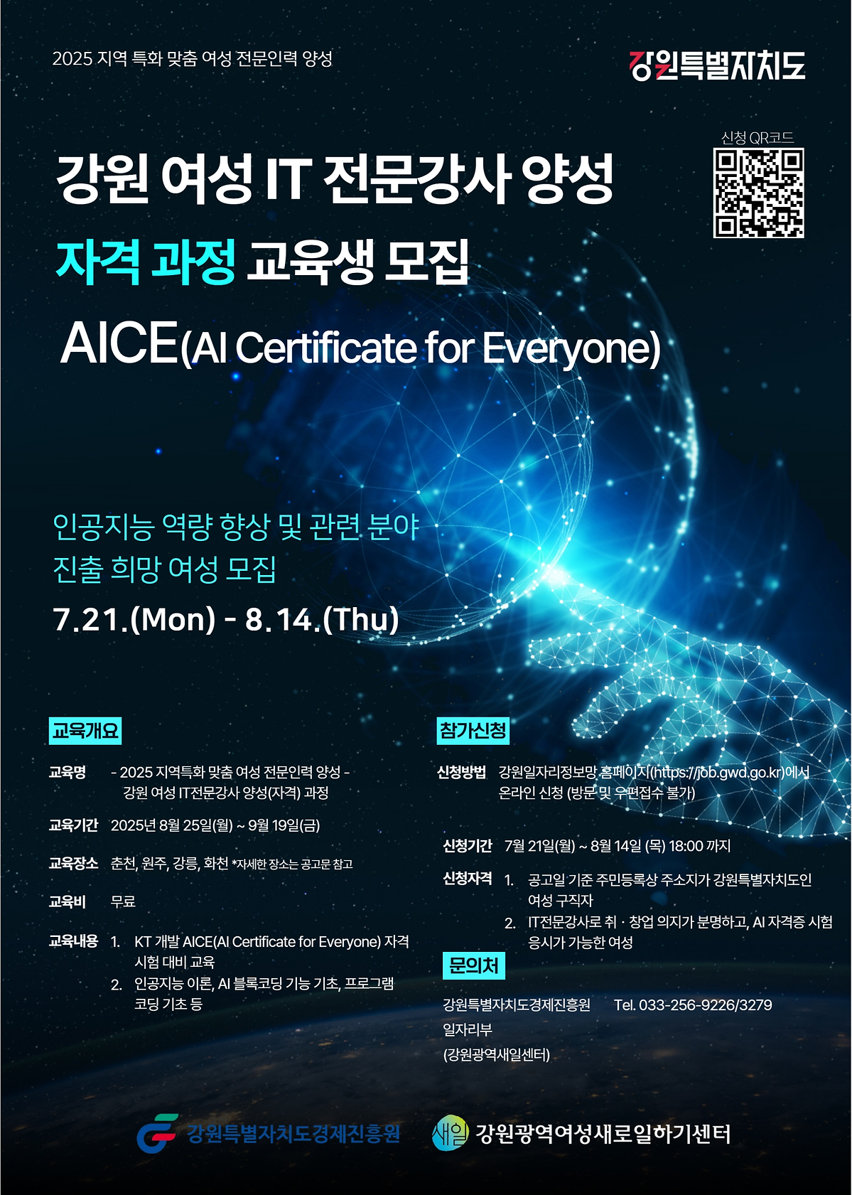 < 2025년 강원 여성 IT 전문강사 양성(자격)과정 교육생 모집 >