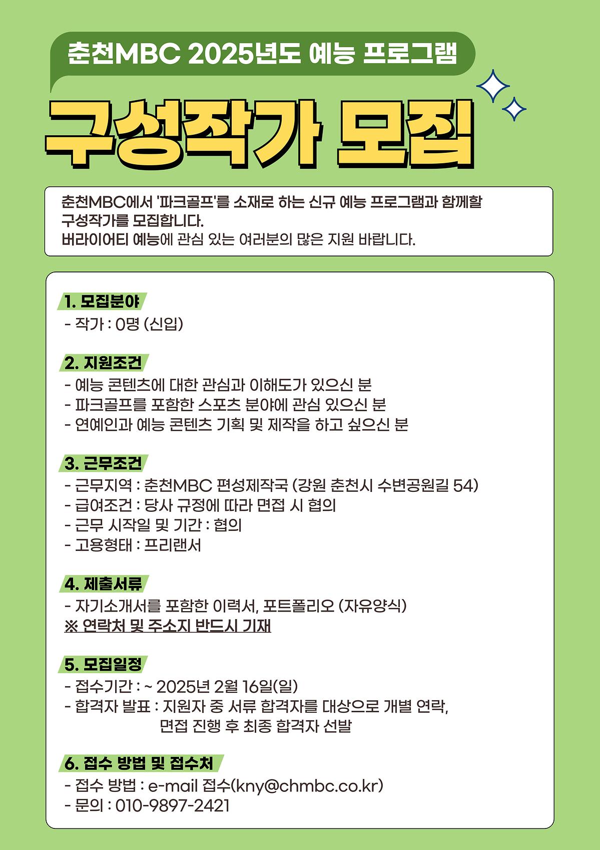 춘천MBC 2025년도 예능 프로그램 구성작가 모집