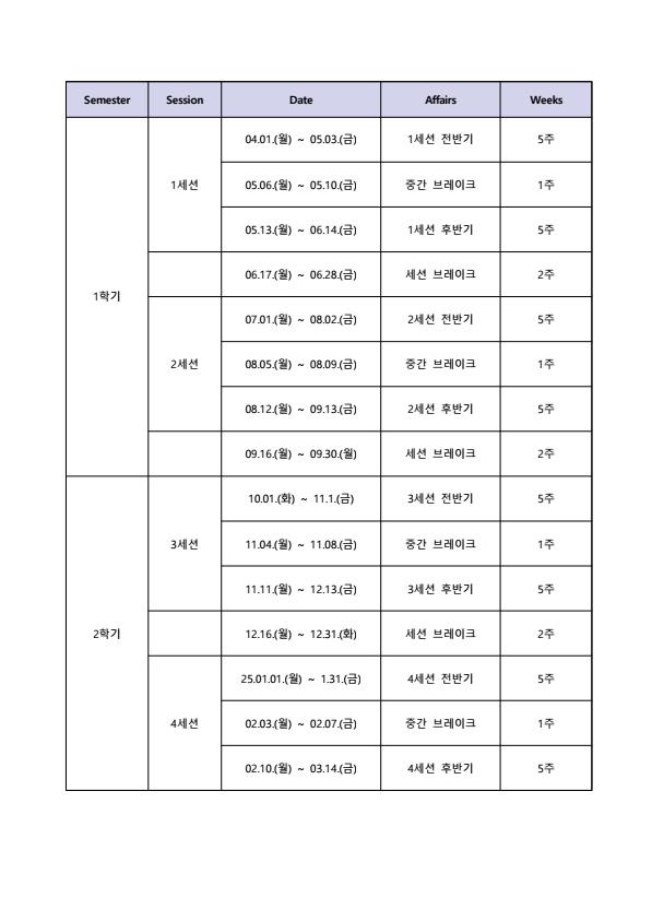 [창의미래융합대학원] 학사일정 안내