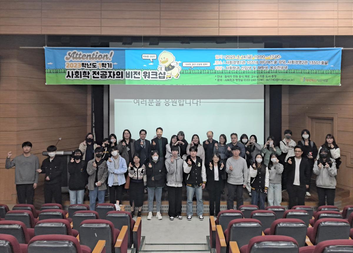온몸으로 봄이 물씬 느껴지던 지난 3월 24일, 설레는 마음을 안고 사회학과에서는 '사회학 전공자의 비전 워크샵'을 개최했습니다. 학과 교수님, 사회학과 신입생과 재학생 및 복수전공생 그리고 졸업하신 동문들이 한 데 모인 반가운 날이었습니다.